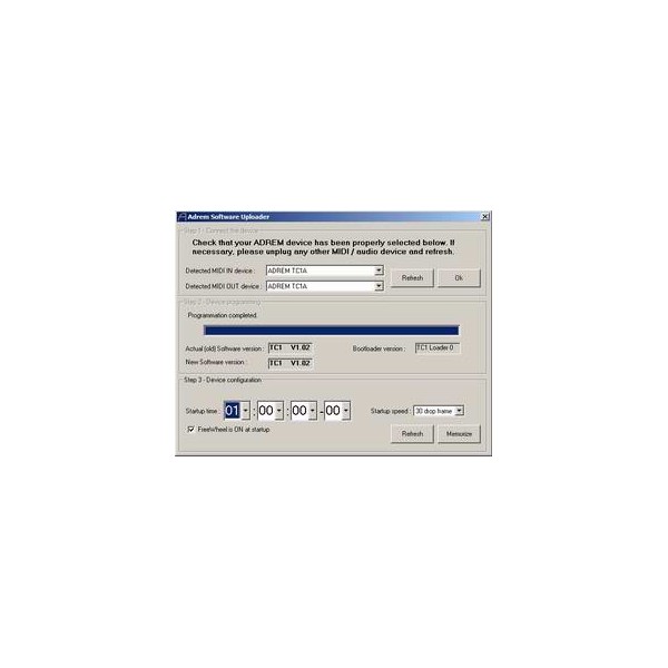 Upload software TC1 vers ADREM TC1 V1-02.exe